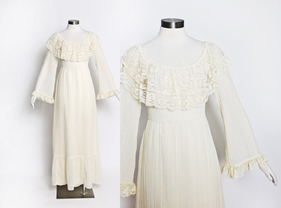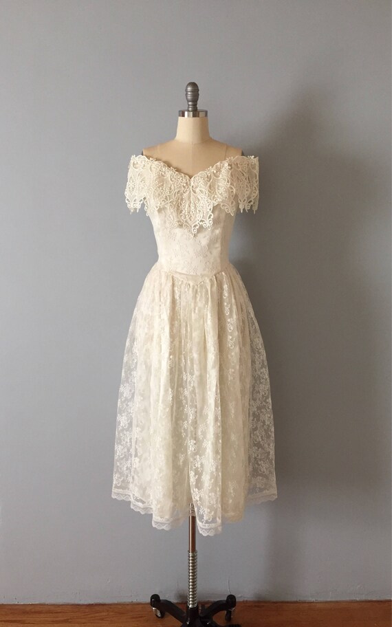 I had a feeling I knew what I wanted my wedding dress to look like, but I didn't know where I would get it from. I knew it was going to need to be altered no matter what, so I didn't care if I bought it cheap. I didn't try any dresses on, I immediately began to just scroll through Etsy. I bought the dress from Dizzy Dreamer Vintage, after looking at so many beautiful gowns. I wanted something that pinched at the waist and flared out. But I wanted the flare to have multiple layers. These were some other options that were super tempting: